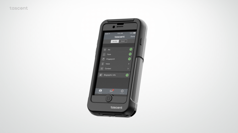 Tascent Mobile combines the world’s leading smartphone devices with advanced multimodal biometrics to deliver a breakthrough mobile biometric capability finely tuned to the needs of end users in travel, border management, humanitarian aid, law enforcement and civil ID.
